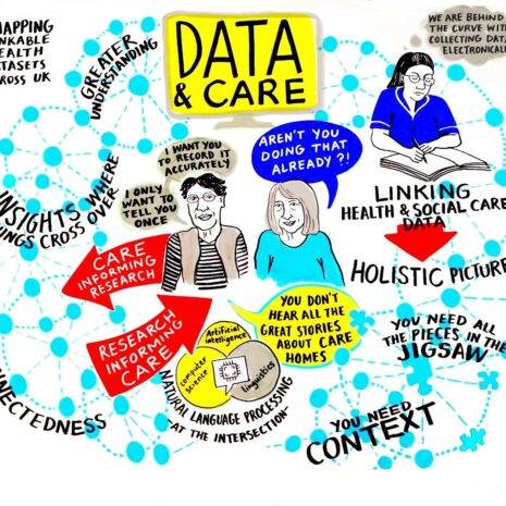 Scottish Government’s (SG) data strategy aspires to empower innovators, industry and researchers who can deliver new technology and data driven insights to improve and inform policy and practice. Care Homes use several different systems to collect data on their residents to support their daily care and reporting to statutory bodies. These are not currently matched up with health or other social care records.This project has shown that there is a lot of enthusiasm for sharing data at both an individual-resident, and summary, level between social care and health – and many people believe this is already happening.